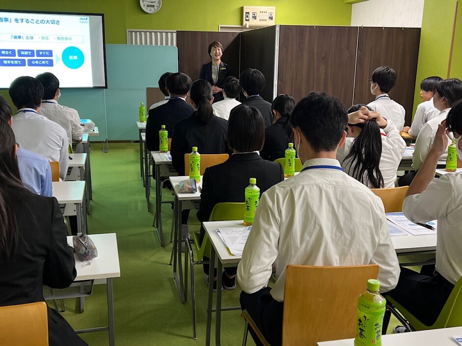 社会人として求められる基本的な礼節やマナー、第一印象の大切さ、言葉遣いや立ち居振る舞いなど、一般企業でも実際に行われている内容を、具体例を交えながらお話しいただきました。